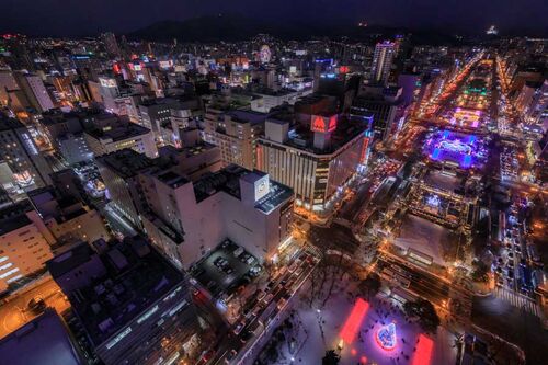 2018年の冬に行われた第38回さっぽろホワイトイルミネーション。さっぽろテレビ塔展望台から会場を撮影しました。一面に美しく輝くイルミネーションを見下ろすことができました。